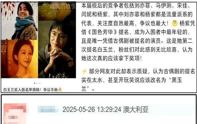 凭什么?别东谈主靠实力硬刚,杨紫却靠古偶“躺赢”?这白玉兰奖的提名,是荧惑如故捧杀?