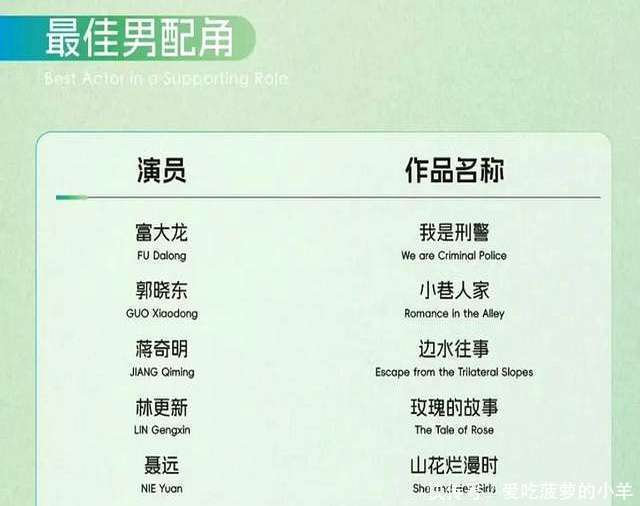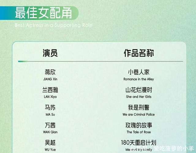 如故要再次恭喜每一位赢得提名的演员。趁机提一句,杨紫的后续作品总算不是古偶剧了,但愿她能给不雅众带来更多类型的优秀作品!