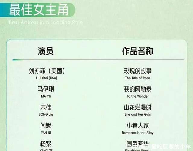 况且,此次提名名单里,还有一位“分量级”东谈主物也引起了争议,那等于刘亦菲。不少东谈主认为她此次能凭借《玫瑰的故事》拿到白玉兰奖提名,几许有点“充数带流量”的意念念。《玫瑰的故事》评分7.4,比杨紫的《国色青春》还要低。