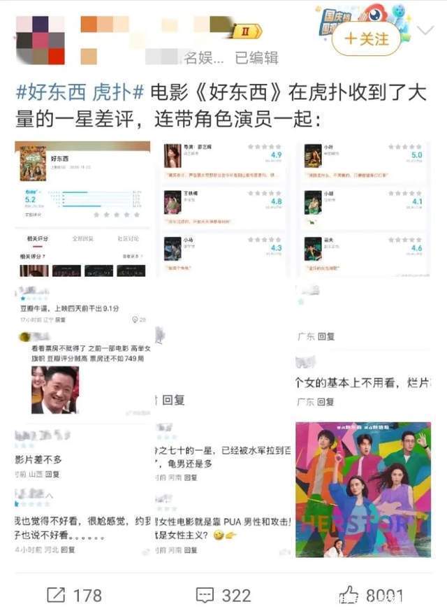 宋佳遴荐的脚本好,无邪形象的饰演当然能够打动不雅众。令东说念主想欠亨的是,全网好评如潮的《好东西》在虎扑平台确实成了哗众取宠的低质烂片。这样好的一部高分口碑电影,在虎扑却碰到近60%的一星恶评,连导演与演员王人被打低分。还有东说念主驳倒:“导演是个女的基本上无谓看,烂片率90%。”该言论显着等于在引起性别对立。讥刺的是这部电影并没灵验辛辣直白的呈现方法给男性不雅影者疼痛。