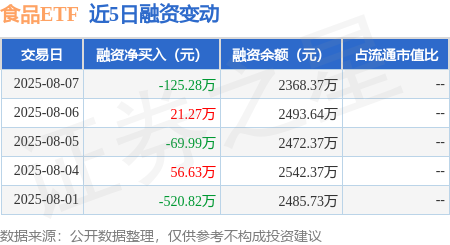 本站音书开云体育,8月7日,食物ETF(515710)融资买入71.15万元,融资偿还196.43万元,融资净卖出125.28万元,融资余额2368.37万元。