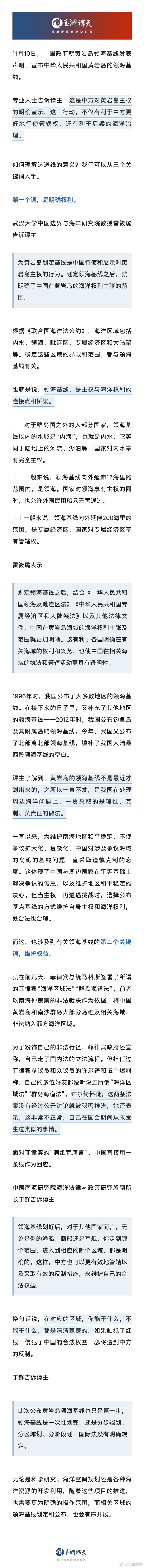 11月10日,中国政府就黄岩岛领海基线发表声明,文书中华东谈主民共和国黄岩岛的领海基线体育游戏app平台,这是中方对黄岩岛主权的明确宣示。如何雄厚这谈线的真谛真谛?咱们不错从三点出手: