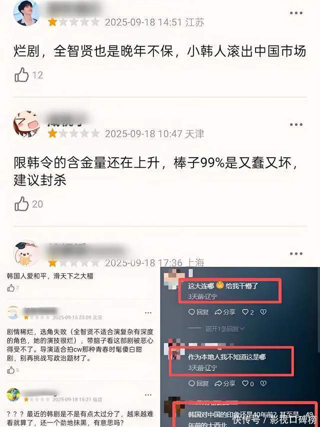 《来自星星的你》让她在国内热度大涨,“顶流女明星千颂伊”的东说念主设真切东说念主心,眩惑了多数国内粉丝的喜欢和搭救。如今这部剧的男女主先后塌房,亦然有一种哲学的既视感。《狂风圈》让网友对全智贤的滤镜碎了一地,辱华事件发酵后,豆瓣评分跌至4.2分,酬酢平台掀翻锁死“限韩令”的声浪。在大部分网友看来,国度尊荣高于偶像珍惜,辱华艺东说念主不应被中国商场给与。