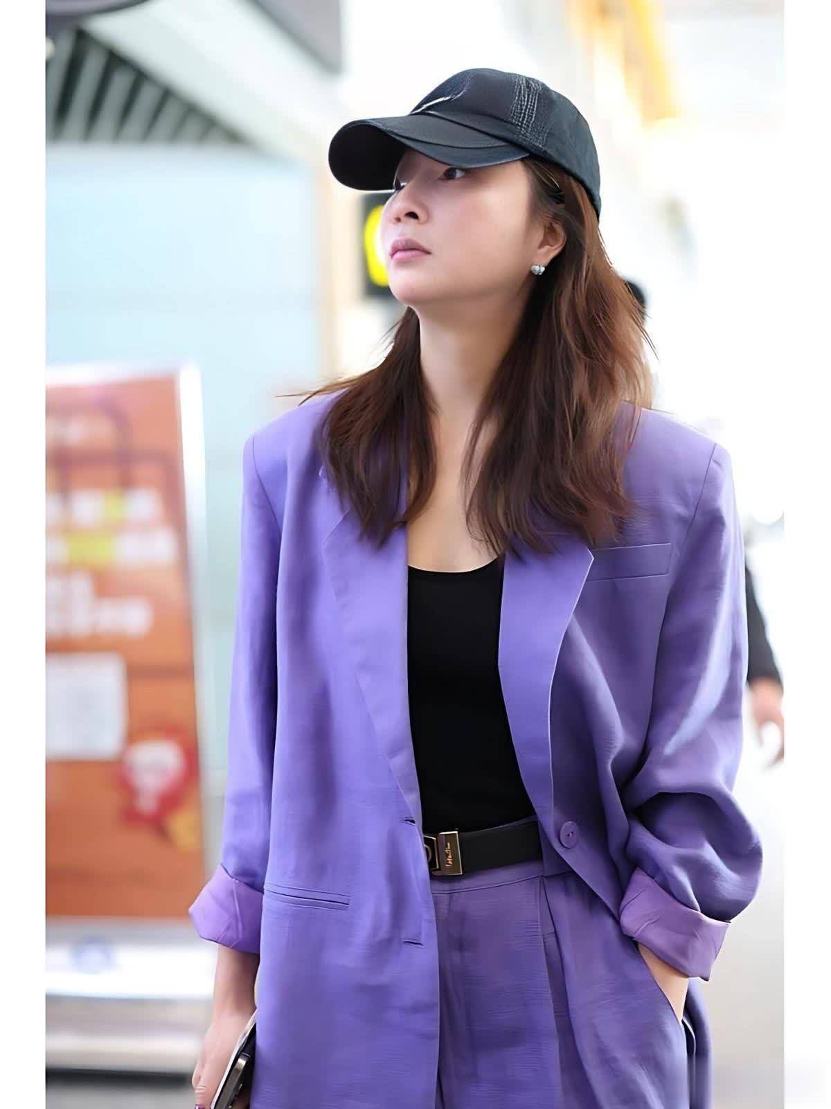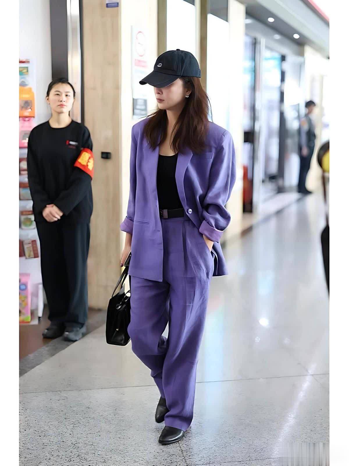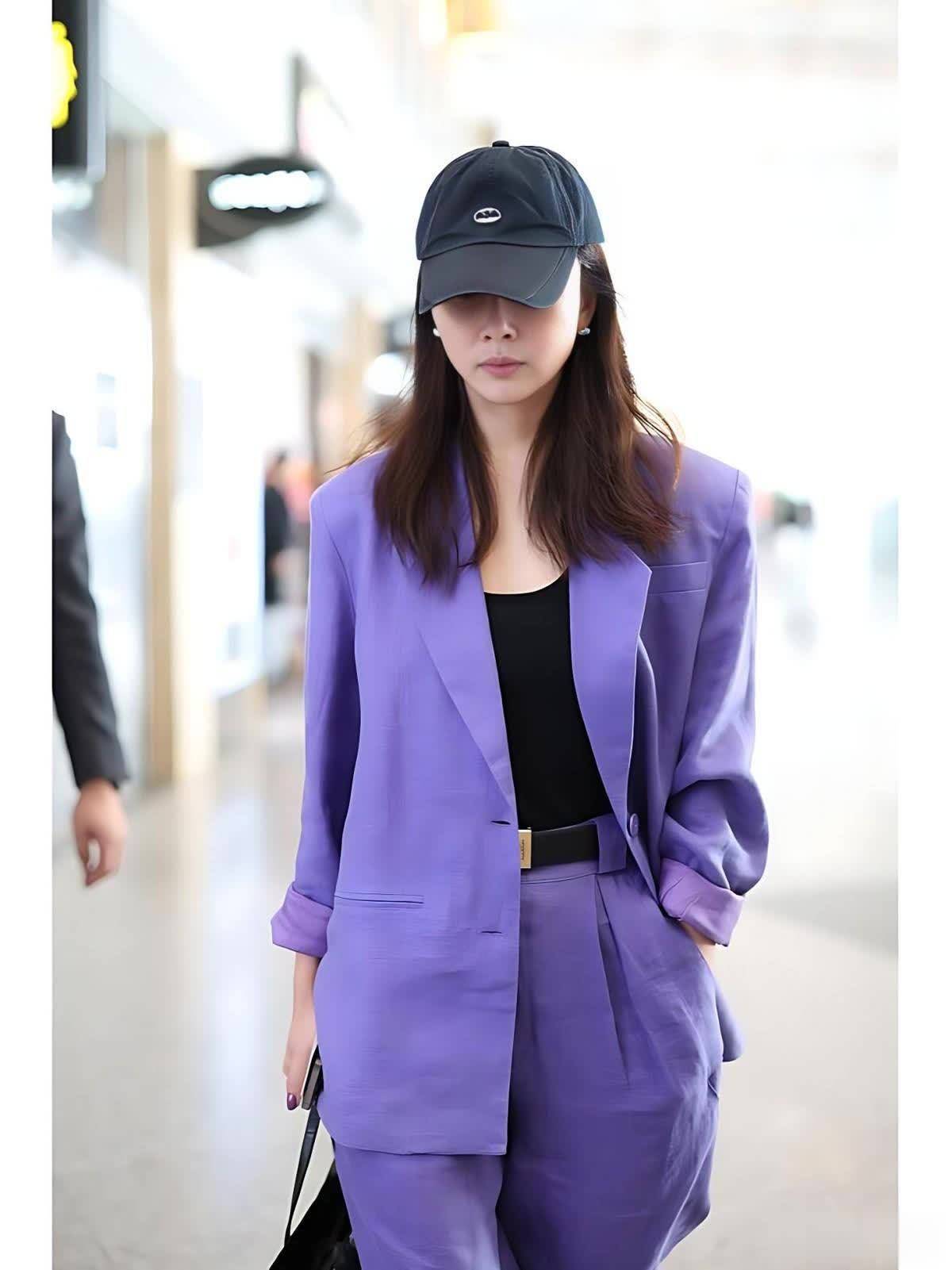 殷桃的这套紫色西装套装,皆备是果敢而又得手的尝试。紫色一直被视为焕发、奥密的标识,但同期也因为其横暴的颜色属性,让许多东谈主楚楚心爱,殷桃却完竣把握了这抹浓郁的紫色。