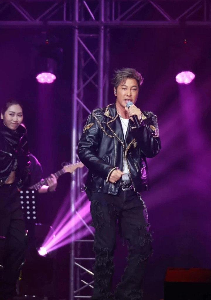 谭耀文登场后唱出东说念主生第一首派台歌《为你解闷》,之后又换上黑皮衣演唱《圣斗士星矢》,其间差点绊倒。
