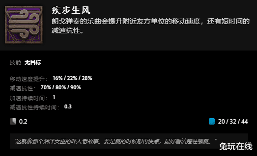 朗戈弹奏的乐曲会进步近邻友地契元的挪动速率,还有短时间的延缓抗性。