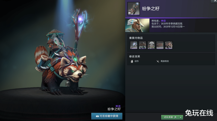 什么动物最可儿,这个话题在汇集上的争议性可能越过甜咸豆腐脑和肉素粽子,但小熊猫毫无疑问不错加入到这个话题的盘问对象之列。目下,善于与野怪打交说念的陈将和小熊猫为伴,“纷争之籽”套装让这个可儿的网红动物成为你的坐骑。