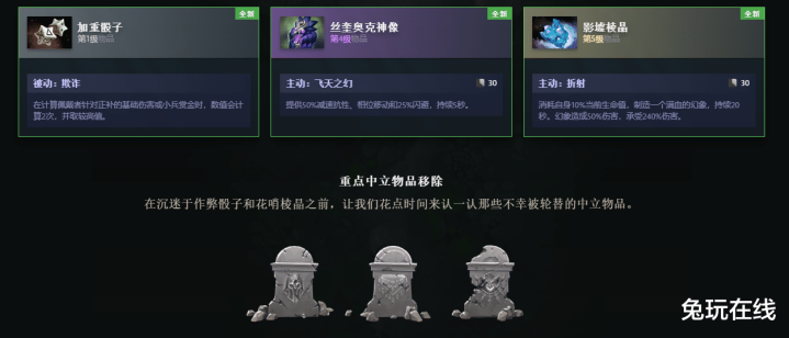 余烬军团战盾、加剧骰子、剥皮血囊、丝奎奥克神像、变态上颚、影墟棱晶等全新中立说念具加入游戏;扯破之鞭、魅影之衣、飞贼之刃、烈风护体、放大单片镜、卒读境法杖、皮洛士大氅、不灭尸王的头盔等中立说念具被循序出局;其余中立说念具也有诸多更正。